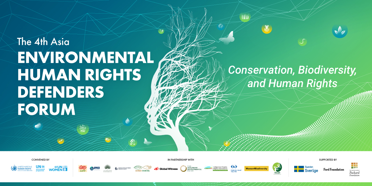 The 4th Asia EHRD Forum will be convened by the Office of the High Commissioner of Human Rights (OHCHR), the UN Environment Programme (UNEP) and UN Women together with the co-organising partners Asia Indigenous Peoples Pact Foundation (AIPP), Asia Research Institute for Environmental Law (ARIEL), Asia Pacific Network for Environmental Defenders (APNED), Business and Human Rights Resource Centre, EarthRights International, Global Witness, the Goldman Environmental Prize, Indigenous Peoples Rights International (IPRI), Publish What You Pay (PWYP), Women4Biodiversity, and Youth Empowerment Climate Action Platform (YECAP).